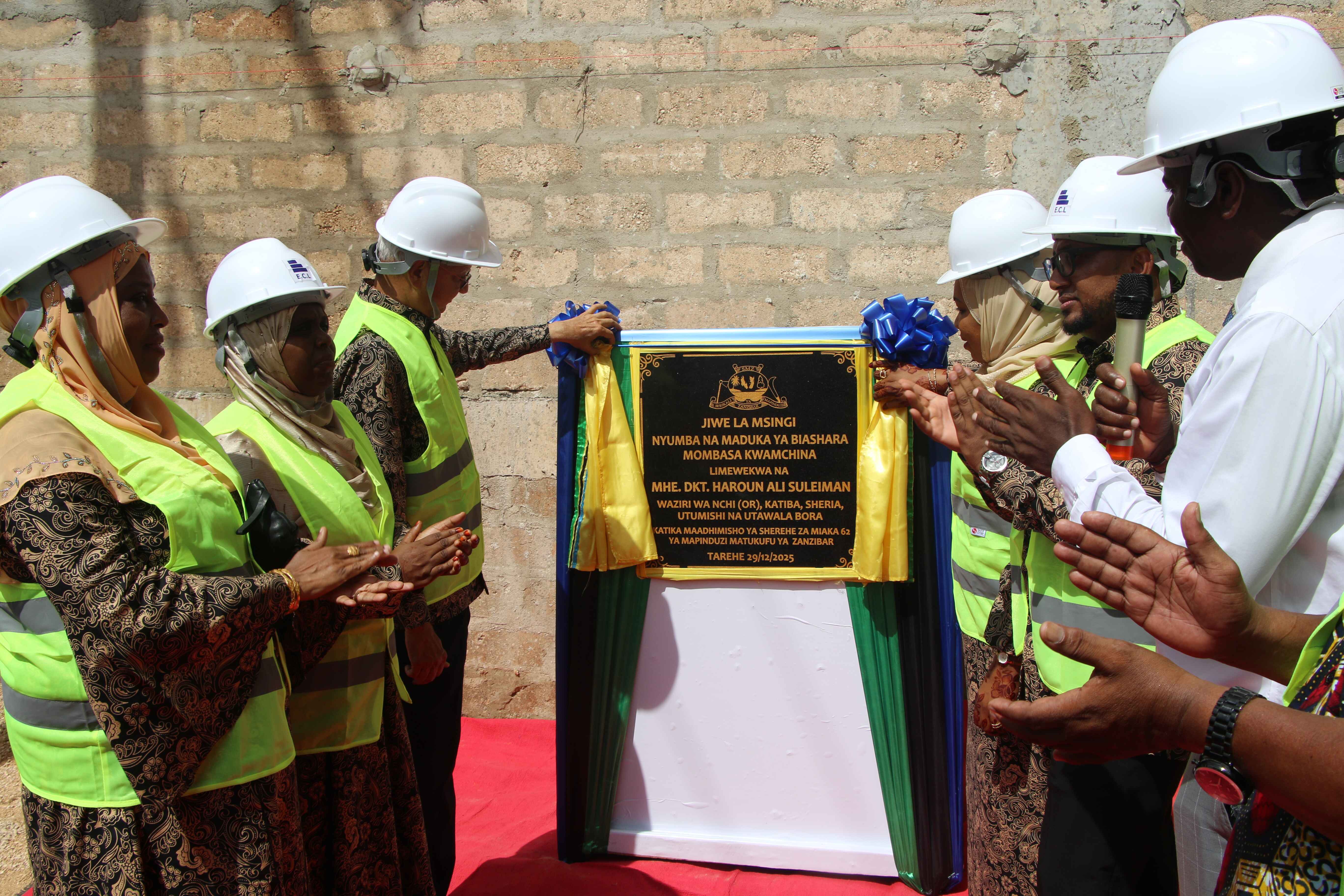 Uwekaji jiwe la msingi nyumba na maduka ya biashara.