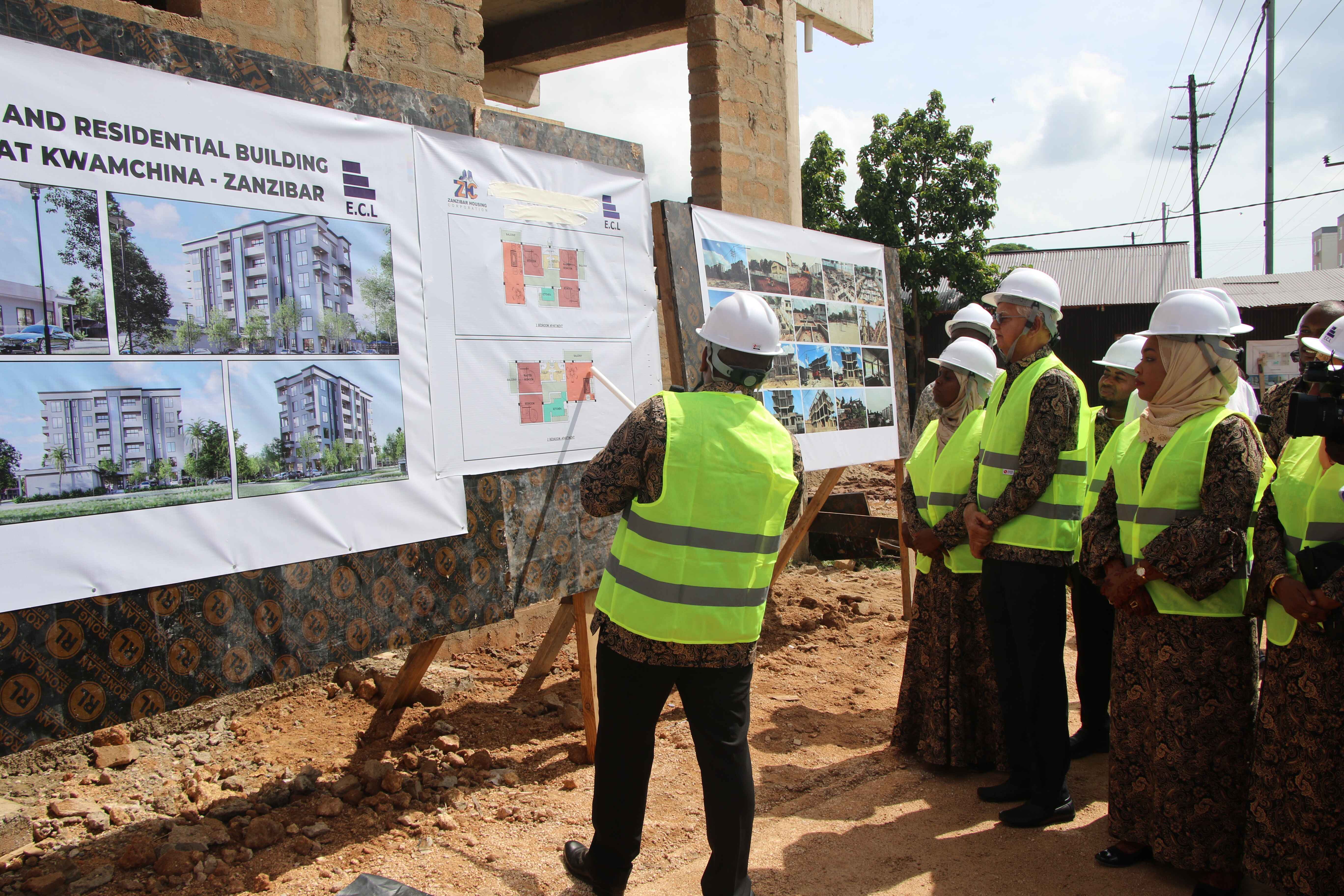 Uwekaji jiwe la msingi wa nyumba na maduka ya biashara.